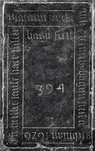 ![]() klik op de afbeelding om deze te vergroten. BeschrijvingDe inscriptie bevindt zich op een band die op de hoeken wordt voorgesteld als zijnde omgeslagen. Hij loopt verder aan de bovenzijde van het middenveld. De rest van de zerk is leeg. BijzonderhedenJan Jan Jacops Zierneels (ook: Ci(e)rneels, Chi(e)rneels, Si(e)rneels, Tsi(e)rneels) en zijn vrouw Maria Aert Hermans van Asperen hadden drie dochters. Peterken was gehuwd met Henrick Henrick Henricx de Hont, Jenneken en Heilken bleven ongehuwd en werden begijnen op het Bossche begijnhof. Jenneken, aldaar woonachtig in het huisje ‘Inden Eenhoren’, schonk in 1620 een erfrente op de Staten van Brabant ten behoeve van de grote infirmerie van het begijnhof. Haar zuster Heilken, in 1586/7 gewoon lid geworden van de Illustre Lieve Vrouwe Broederschap, maakte het beleg en de val van ’s-Hertogenbosch in 1629 mee en bleef in de stad wonen. Zij maakte in 1631, 1635 en 1639 testamenten. Kort voor juli 1646, wanneer haar erfgenamen een erfdeling van haar nagelaten goederen aangaan, zal zij zijn overleden. Zij werd bij haar zuster in de Sint-Jan begraven. 1. Geschiedenis(Oud 195/465; Nieuw 394; Smits 83C) * Personen